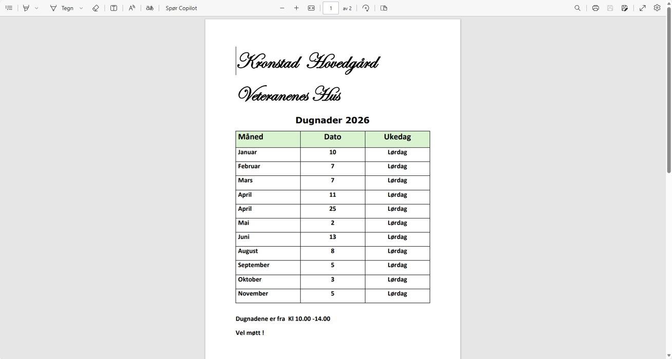 Vi kan ikke glemme at uten dugnaden og alt det arbeid som er utført og blir nedlagt i hagen og på huset, så hadde ikke Kronstad Hovedgård Veteranenes hus vært i den stand som det er i dag. Vårt hus og vårt tilholdssted.
